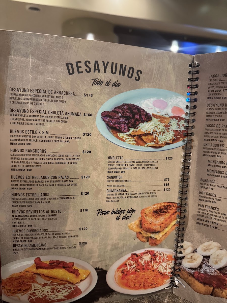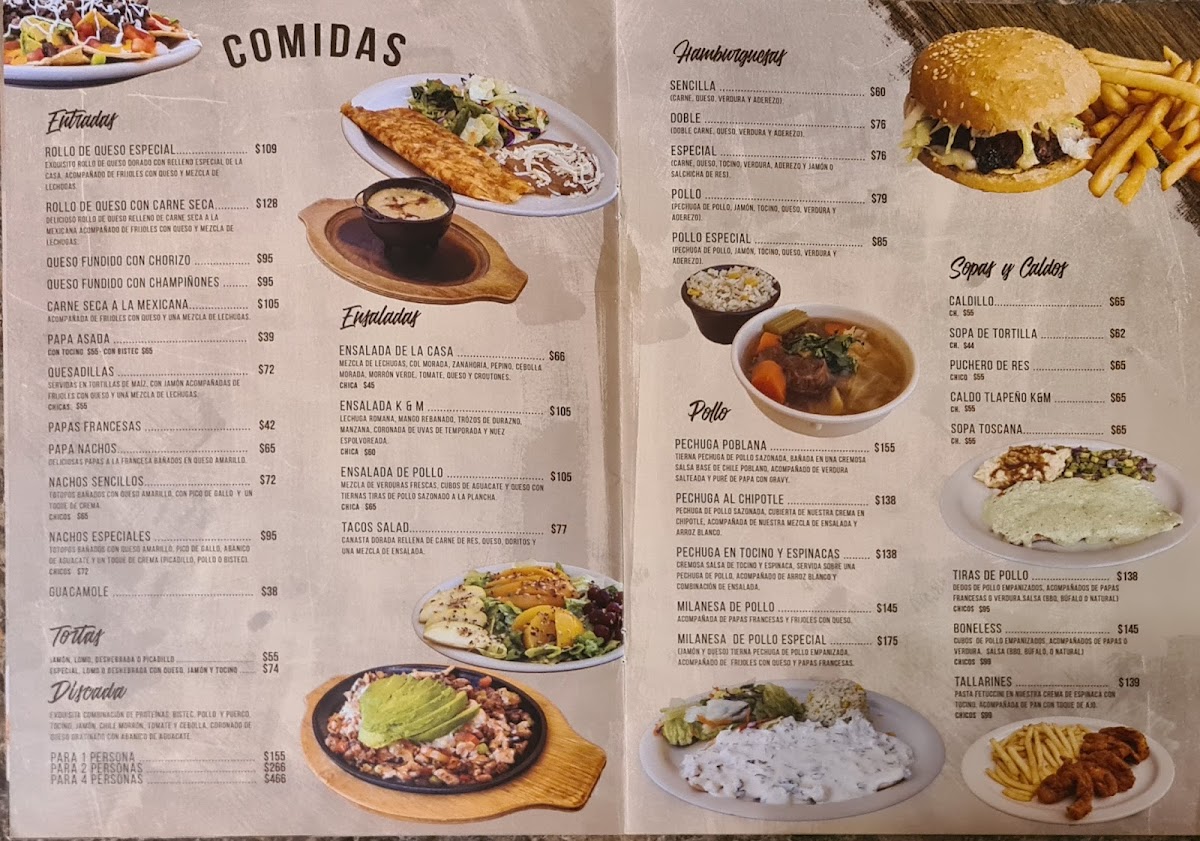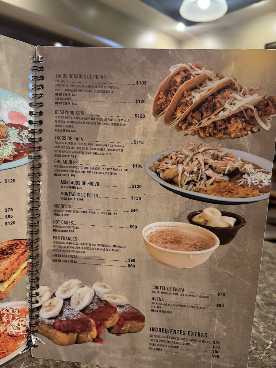 Visitors can expect options suitable for breakfast, brunch, lunch, or casual dining occasions, with dishes available for quick orders or more leisurely meals. The menu is organized to accommodate various tastes and includes both traditional Mexican flavors and internationally familiar items.